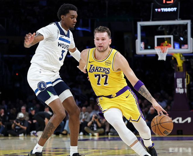 东契奇今夏苦练了身体,重塑了体型,精壮后的他不可阻挡,男篮欧洲杯时场均砍下34.7分8.6板7.1助,回到NBA后他更厉害,揭幕战对阵勇士他27中17(三分10中2)砍下43分12板9助2断1帽,可惜湖人整体战力不足(詹姆斯缺阵)以10分之差输球,第二战对阵森林狼他23中14(三分12中5)砍下49分11板8助,带领缺少詹姆斯的湖人在一度落后11分的情况下逆转大胜,最终赢了森林狼18分。