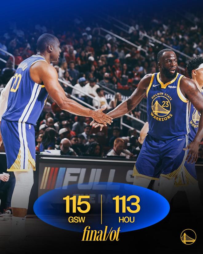 霍福德勾手取分,杜兰特外线出手被梅尔顿犯规,前者3罚2中。梅尔顿、桑托斯相继冲击篮下未能打进,梅尔顿完成补篮。休斯顿请求暂停,杜兰特2罚1中,格林被杜兰特抢断,时间走完。最终,勇士以115比113险胜火箭,拒绝了11分逆转。